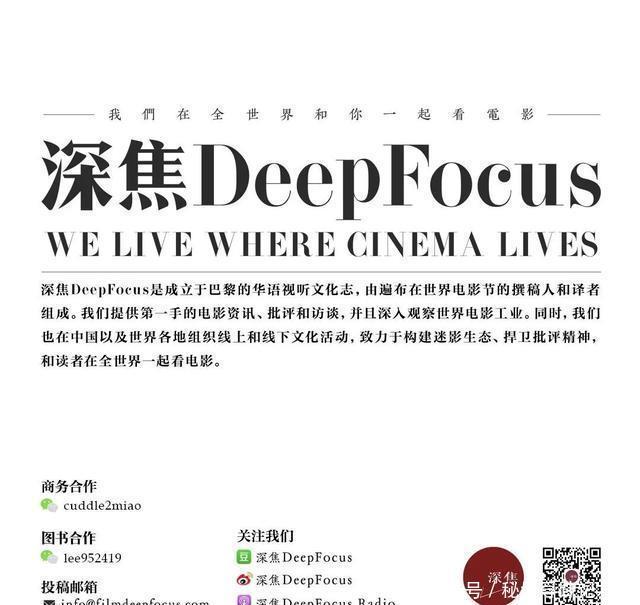 往期播客:为了爽,填塞爽!也唯一爽? 喜马拉雅APP订阅 深焦Radio 苹果播客订阅 深焦 DeepFocusRadio 小天地APP订阅 深焦DeepFocusRadio 微信播客订阅 深焦艺文志 Spotify订阅 深焦DeepFocusRadio