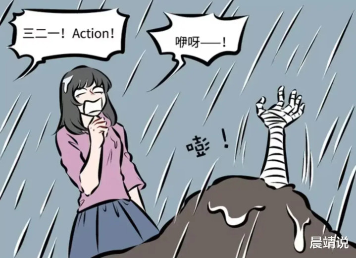 跟着导演的三二一!Action!阿布的戏份持重开动,在大雨中独自行走的女主角,途经一个无主的坟包。倏地坟包里探出了一只缠满绷带的大手,这一变故,把女主角吓的呆愣在原地,健忘了叛逃。