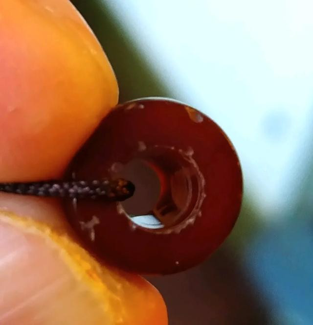 二、西玛剁珠的打孔特征。西玛剁珠的打孔,由于受那时的工艺与器用收尾,西玛剁珠钻孔,基本都是以实心钻一面打孔,在要买通的时候,再通过外力敲下中芯。是以,终末呈现出来的成果,基本都有三个脾气:第一,喇叭孔,入口大,出口小;第二,孔谈中基本都有慢速器用打孔留住的螺旋纹;第三,出口处也即是小口端,多有边际倾圯的思绪。这小数,与皆家文化玉璧的打孔成果相配肖似。环球耐心不雅察底下的截图。