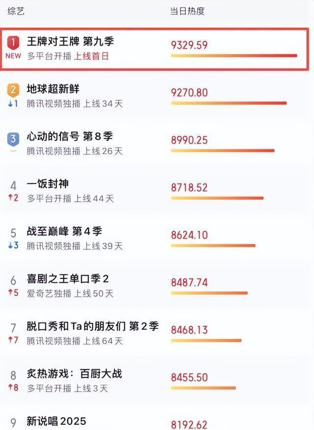 不外综艺限度竞争是非,《花儿与少年·齐心季》最强有劲的敌手出场了——《王牌对王牌第九季》(以下简称《王牌9》)。 作为浙江卫视的“台柱子”,《王牌》系列号称不雅众们的“电子榨菜”,如今第九季强势来袭,首播就拿下全网热度第一,太牛了。