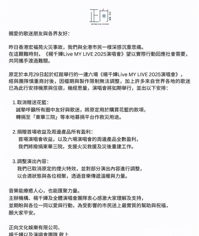 在此次失火爆发之前,杨千嬅就肃穆官宣了我方《Live MY LIVE》的演唱会。