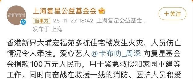 他也通过上海复星基金会,定向捐钱了100万元。