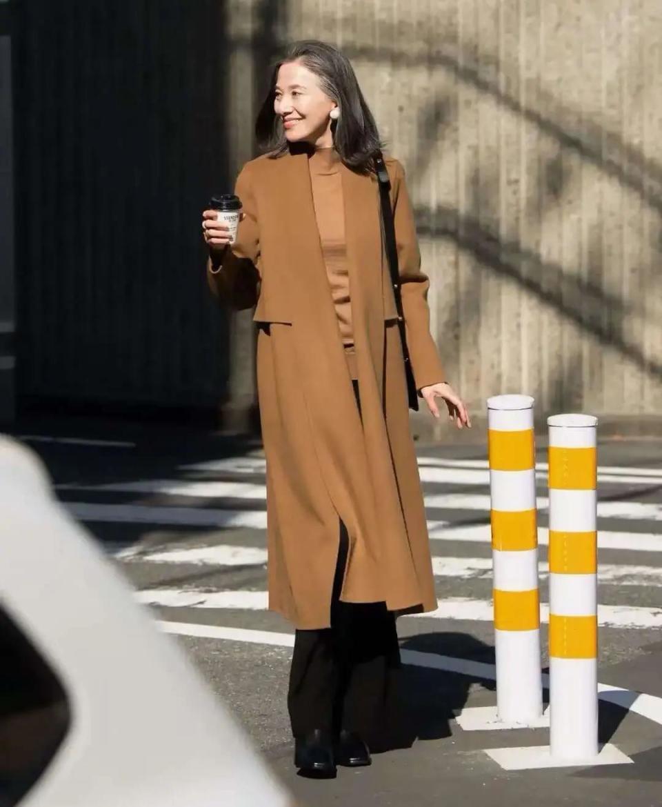 闲居穿搭更保举全球选拔像底下这种好意思拉德色系的大衣外衣,内搭同色的真挚衫,加上一条玄色的直筒阔腿裤,脚上穿了玄色的皮鞋,这么的穿衣造型,奔五奔六的中年女性穿的也很有气质,这亦然穿大衣不显老的诡秘,颜色搭配对了如实能让你更显年青。