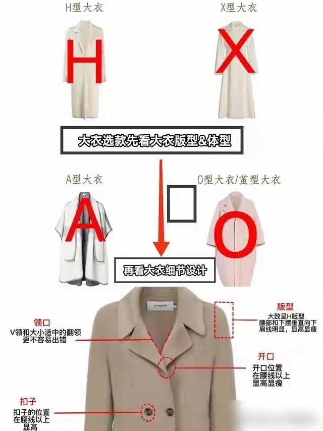 选拔带外衣,最主要的便是先看大衣的版型和我方的体型是否符合,比如大衣外衣分为h型大衣、X型大衣,A型大衣,O型大衣。